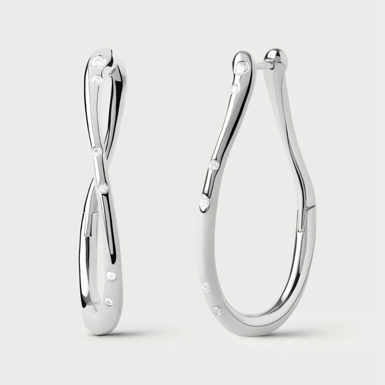 The Air Silver Hoops by PD Paola combine a wavy form crafted from sterling silver, accented with zirconia stones. The perfect addition to any outfit both day and night. Packaged in a luxury PD Paola gift box