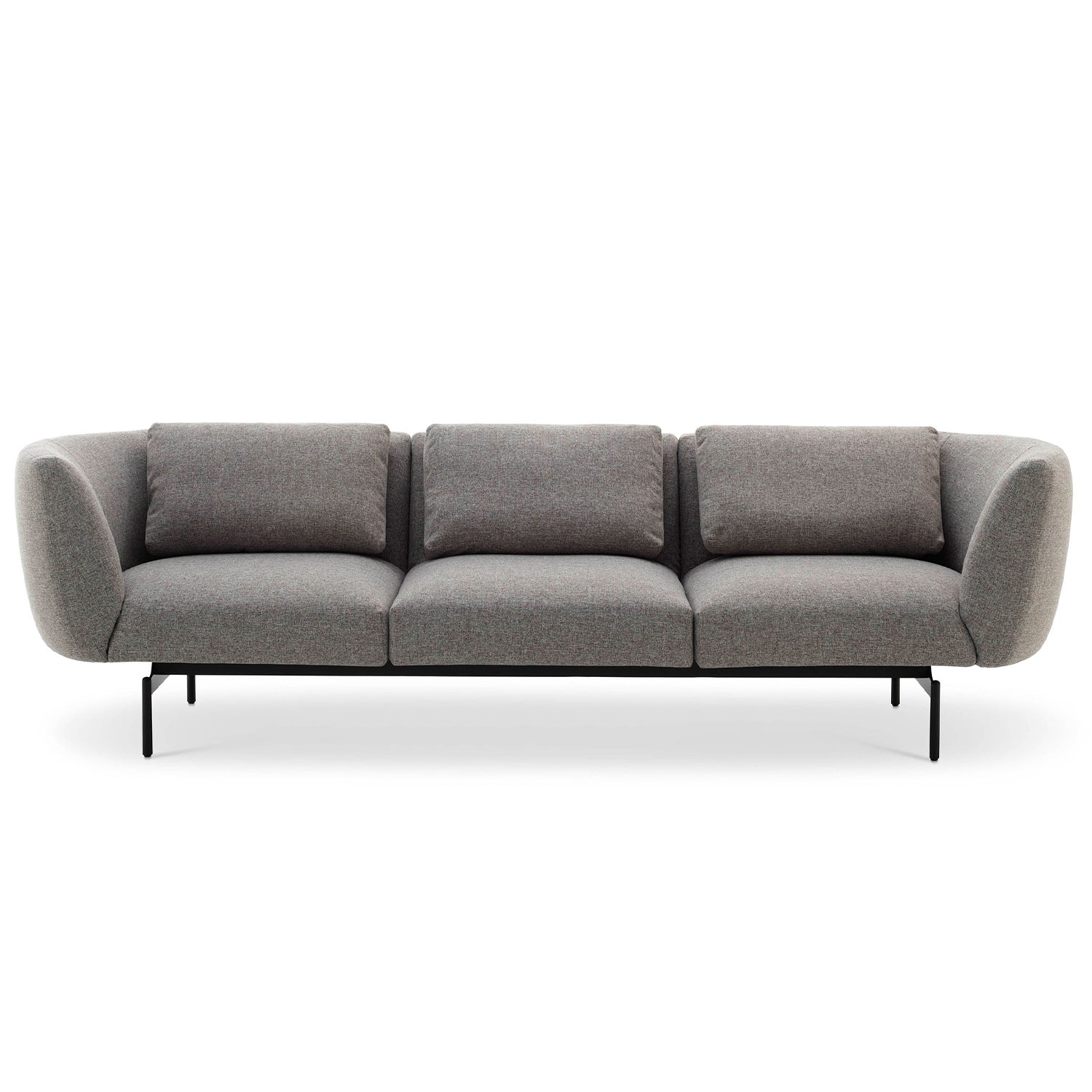 The Rendez-vous Sofa by Saba is a new seating system envisaged for living spaces and contract environments alike. The objective of this design is to allow the upmost flexibility in configurations with minimal elements. A structural base crafted from metal provides the support system, upon which the seating elements are fixed and can be moved around according the needs of your interior. Rendez-vous is available with a curved seat panel or a straight design. The curved lines of the upholstered seats create a visual softness, whilst the raised back and armrests give this sofa a strong personality. Integrated side tables can be incorporated to enhance the functionality of this contemporary sofa. Upholstered in a range of high-quality textile options with fully removable covers for easy maintenance.