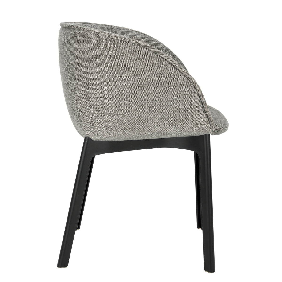 The Charla Upholstered Dining Chair designed by Patricia Urquiola for Kartell boasts an elegant form, marrying comfort with a modern aesthetic. Curvaceous flowing lines welcome the sitter with a tactile upholstery and a supportive, almost wrap-around, seat and back. Fully upholstered in Antibes fabric, available in a wide range of colours. The streamlined legs are crafted from recycled and recyclable mass-dyed thermoplastic technopolymer in a black finish. The ultimate dining chair or desk chair for contemporary interiors, suited to both contract or residential settings.