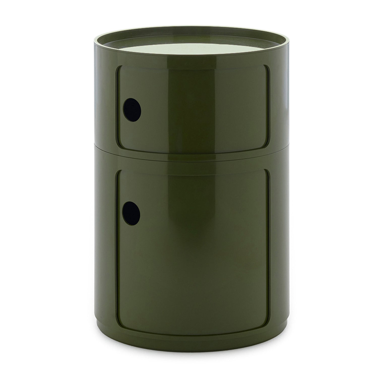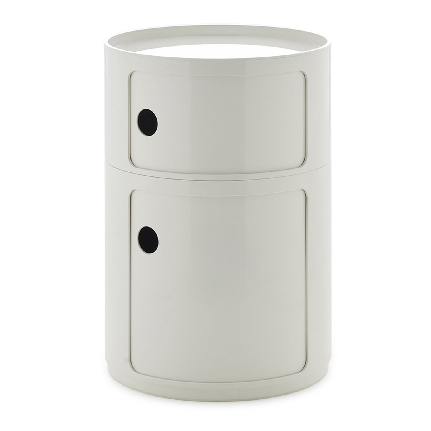 The Componibili 3-tier unit features three compartments with sliding doors in a cylindrical body. In a range of new colours, this classic storage unit fits perfectly into a bathroom, bedroom, kitchen, living or office space. Available with the addition of four wheels which can be attached for increased mobility.