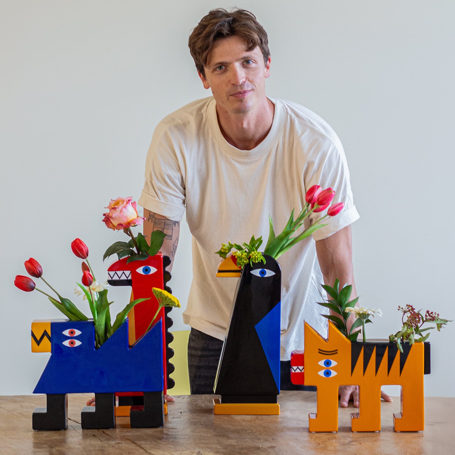 Designed by artist Marco Oggian, this collection brings together colourful forms and geometric shapes in a range of playful objects. Featuring spirited characters, either animal or human, each candlestick takes on its own persona. Vivid colours bring life to these decorative objects, perfect for kids and adults alike. Marco Oggian’s designs have become globally recognised for their bold, colourful geometry and playful eccentricity. This sculptural candlestick is beautifully crafted, representing the designer’s unique vision.