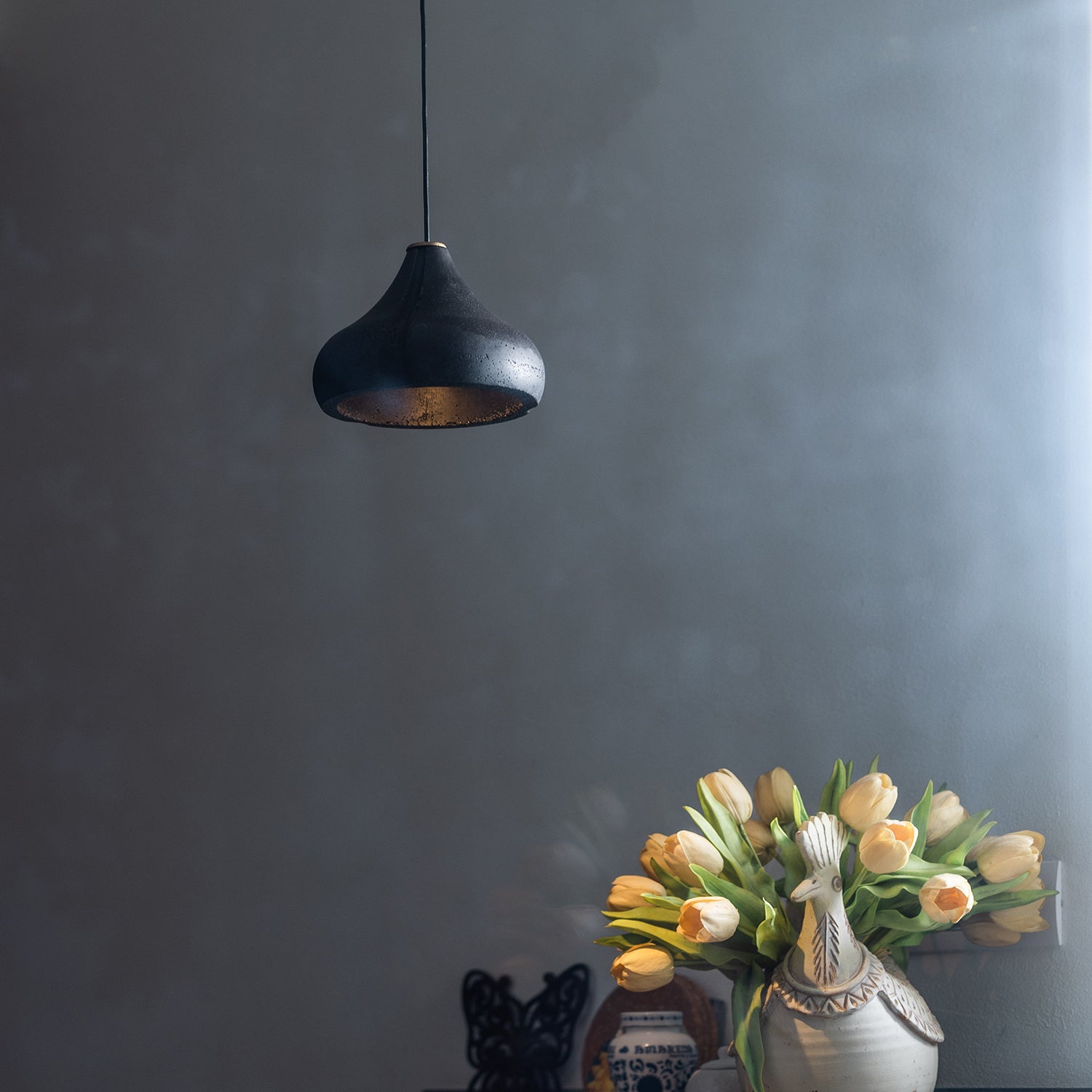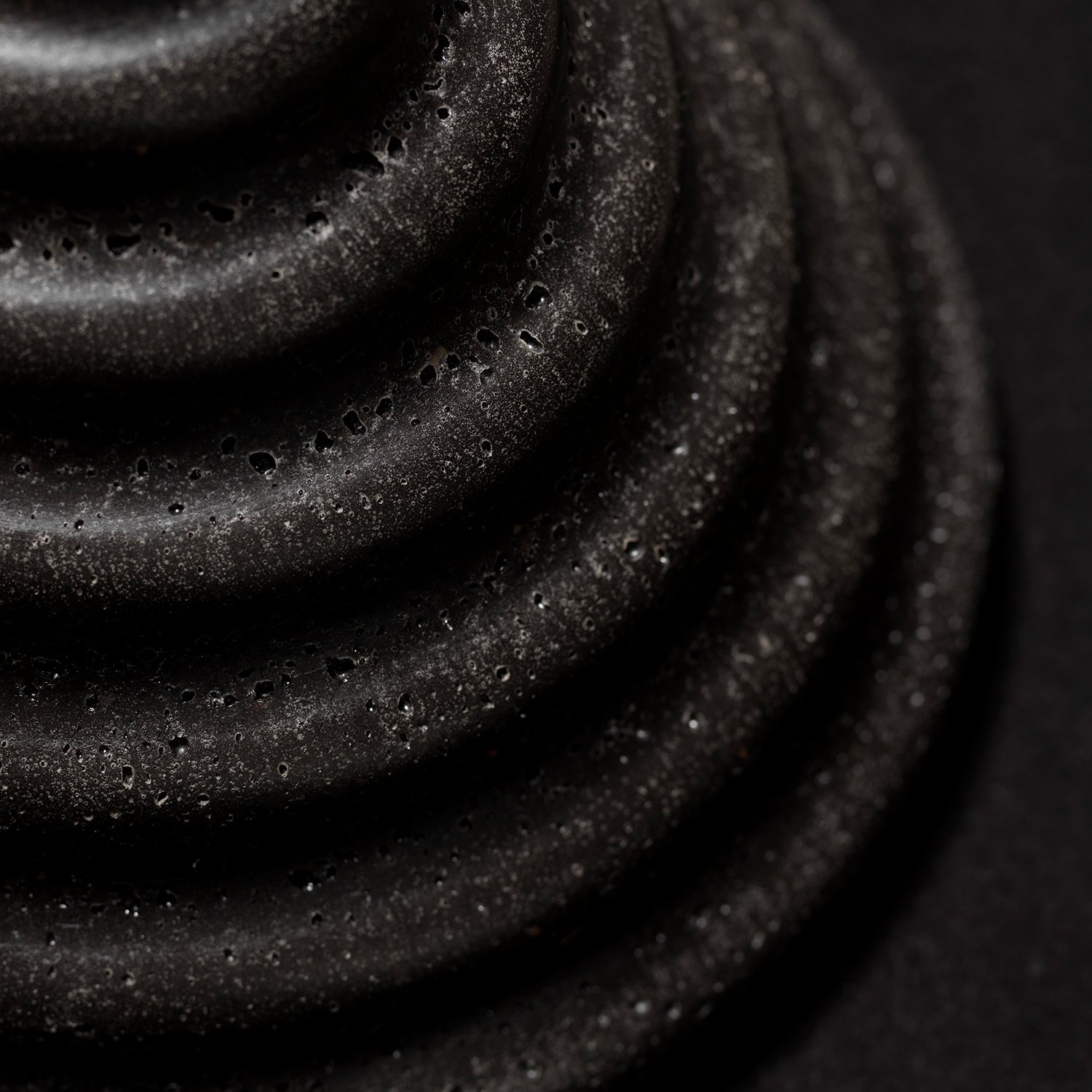 Designed by Alberto and Francesco Meda for Foscarini, this trio of pendant lights pay homage to the volcanic Aeolian Islands, just north of Sicily: Alicudi, Filicudi and Panarea. This set of striking suspension lamps are crafted from recycled black lava stone, a project that combines experimentation and sustainability, transforming scrap material from the earth that would normally go to waste. Embodying the rugged nature of lava, each light shade features variegated porous surfaces and craters characteristic of the stone. Crafted by expert artisans, each light is sculpted into its unique form, the result is a design with irreplaceable variations on every piece. Unlike marble, lava is not quarried, but gathered directly from the mountain after being expelled from the volcano.
