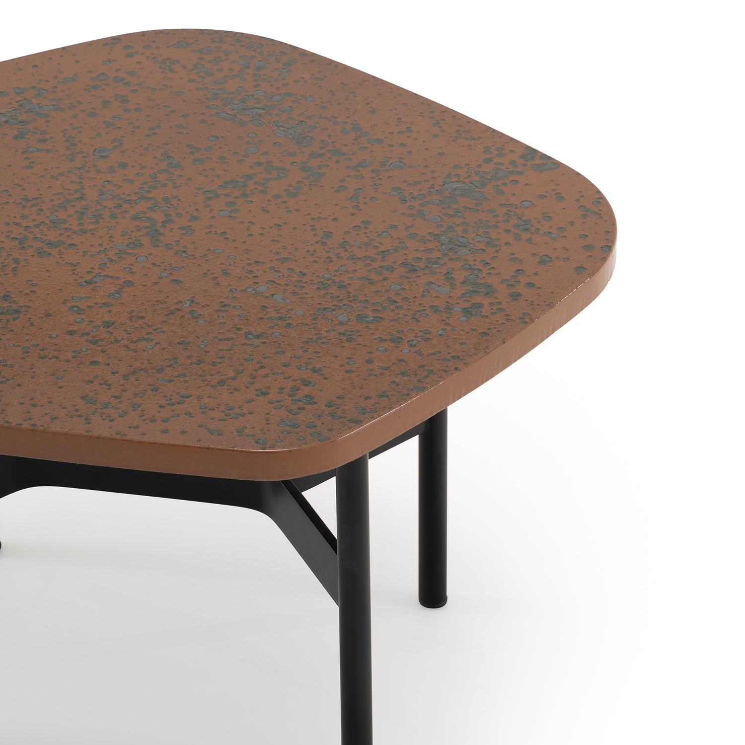 Please note: due to the natural materials and processes used in crafting this table. The surface finish on each table top is unique and will vary according to how the terracotta enamel reacts to the lava during the process of making.