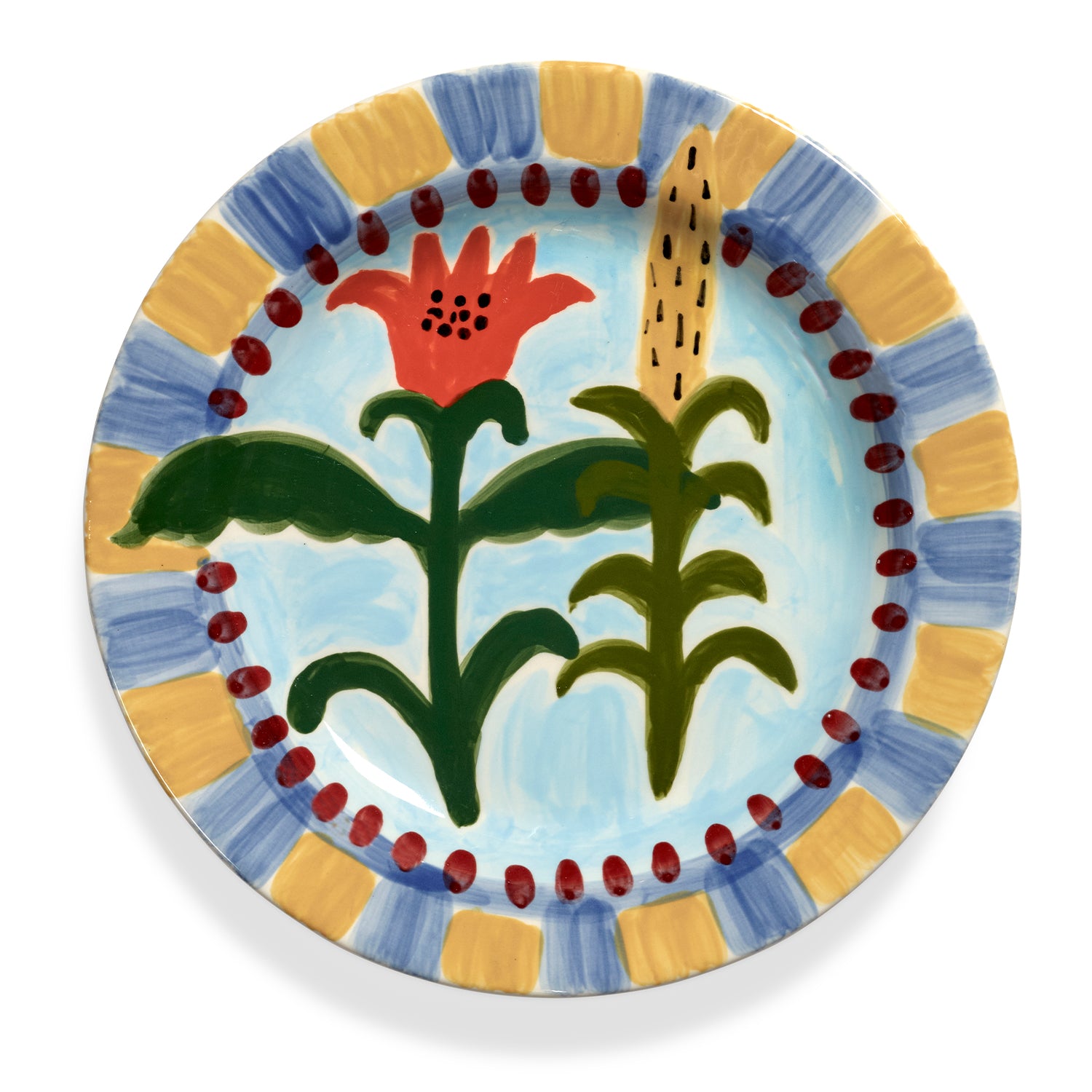 Designed by Belgian-Peruvian contemporary artist Shurleey, the Santiago de Borja collection takes its inspiration from folklore motifs, featuring colourful hand painted decoration and rhythmic patterns evoking the tropics. Strong outlines and vibrant contrasts reflect the artist’s expressive, contemporary painting style. These hand painted dinner plates are sure to add a little character and latin flavour to your dining table.