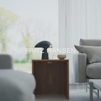 The Night Owl Table Lamp, designed by Nicholai Wiig Hansen for Fritz Hansen, references the form of a bird with its oval shade, emitting a warm Nordic light. The monochrome shade is combined with a conical base in natural ash wood, together forming a single unit of balanced proportions. This striking yet informal table lamp fits seamlessly into both contemporary and modern interiors, either in a living space or at the bedside, as a reading lamp.