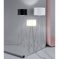 The Ray F2 Floor Lamp designed by Rodolfo Dordoni for Flos features a contemporary and streamlined form, emitting a soft and diffused light. A minimal steel tube base with a brushed and chrome-plated finish is combined with a cylindrical aluminium diffuser in white, with a gloss finish exterior.