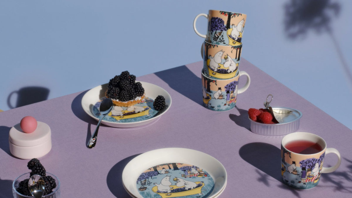 Discover the nostalgic and curious collection of Moomin adventures mugs, plates and bowls. The range features illustrations by Tove Slotte, based on Tove Jansson's original artworks. Porcelain tableware and tumblers for children and the young at heart, manufactured by Arabia.