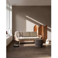 Materials: Solid Ash Frame with your choice of wood stain, foam cushions upholstered in universal woven fabric.