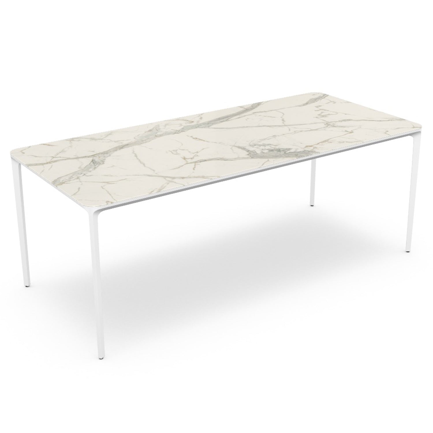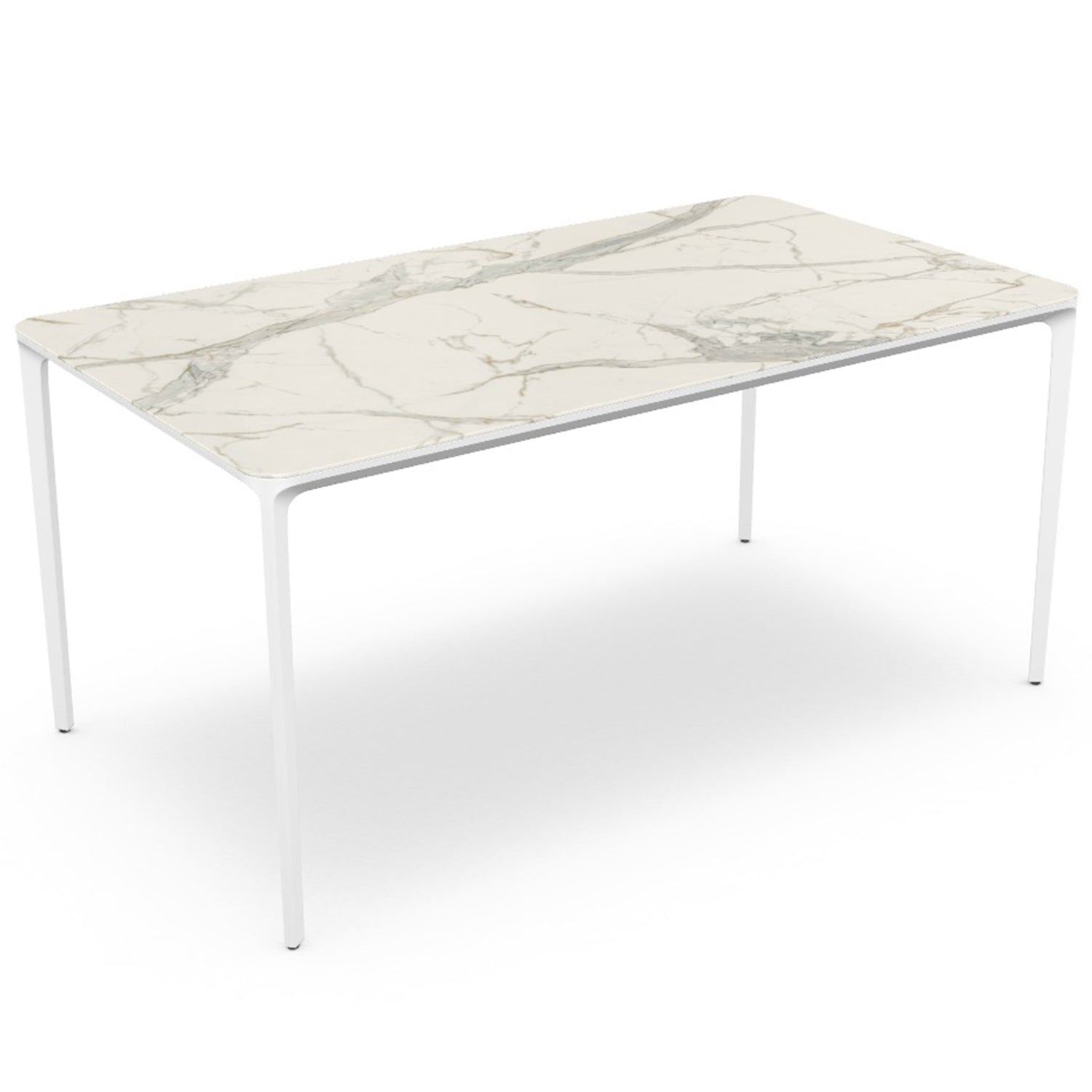 Materials: Lacquered aluminium legs and base. Marble-effect ceramic table top.
