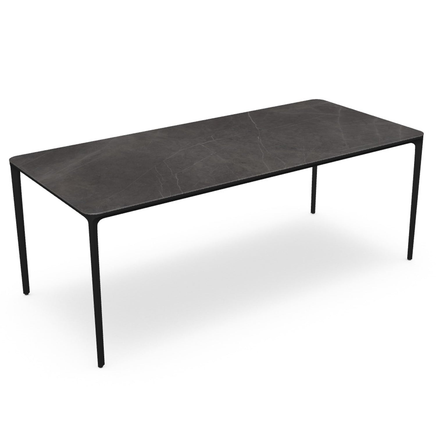 The Slim Rectangular Dining Table designed by Sovet, combines a minimal metal frame with a tactile, marble-effect ceramic table top. This contemporary dining table exudes a luxury aesthetic, combining the highest quality materials with the utmost craftsmanship. This rectangular dining table accommodates between 6-10 dinner guests.