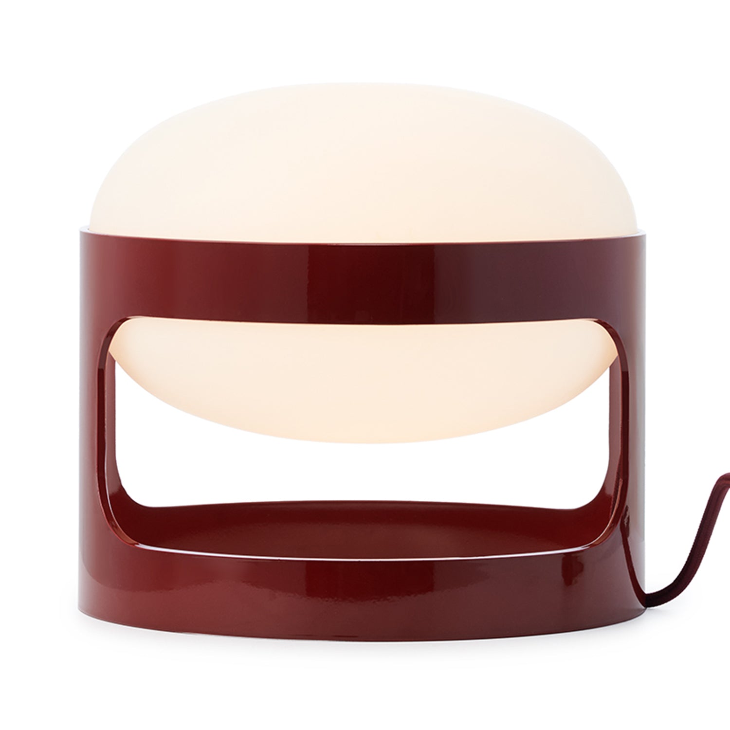 The KD28 Lamp by Kartell was designed by Joe Colombo in 1967. This retro classic has been reissued in an array of vibrant tones, encapsulating the spirit of the era. These days, this classic design is crafted recycled materials, boasting a sculptural base with a gloss finish, supporting the spherical dome light diffuser within. Emitting a warm and ambient light via the matte-finish diffuser in an evenly distributed direction, this statement table lamp is sure to become the focal point of any modern living space. A symbol of Italian industrial design from a bygone era, the KD28 Lamp draws on references of the past with the latest lighting technology. Fabric-covered power cable.