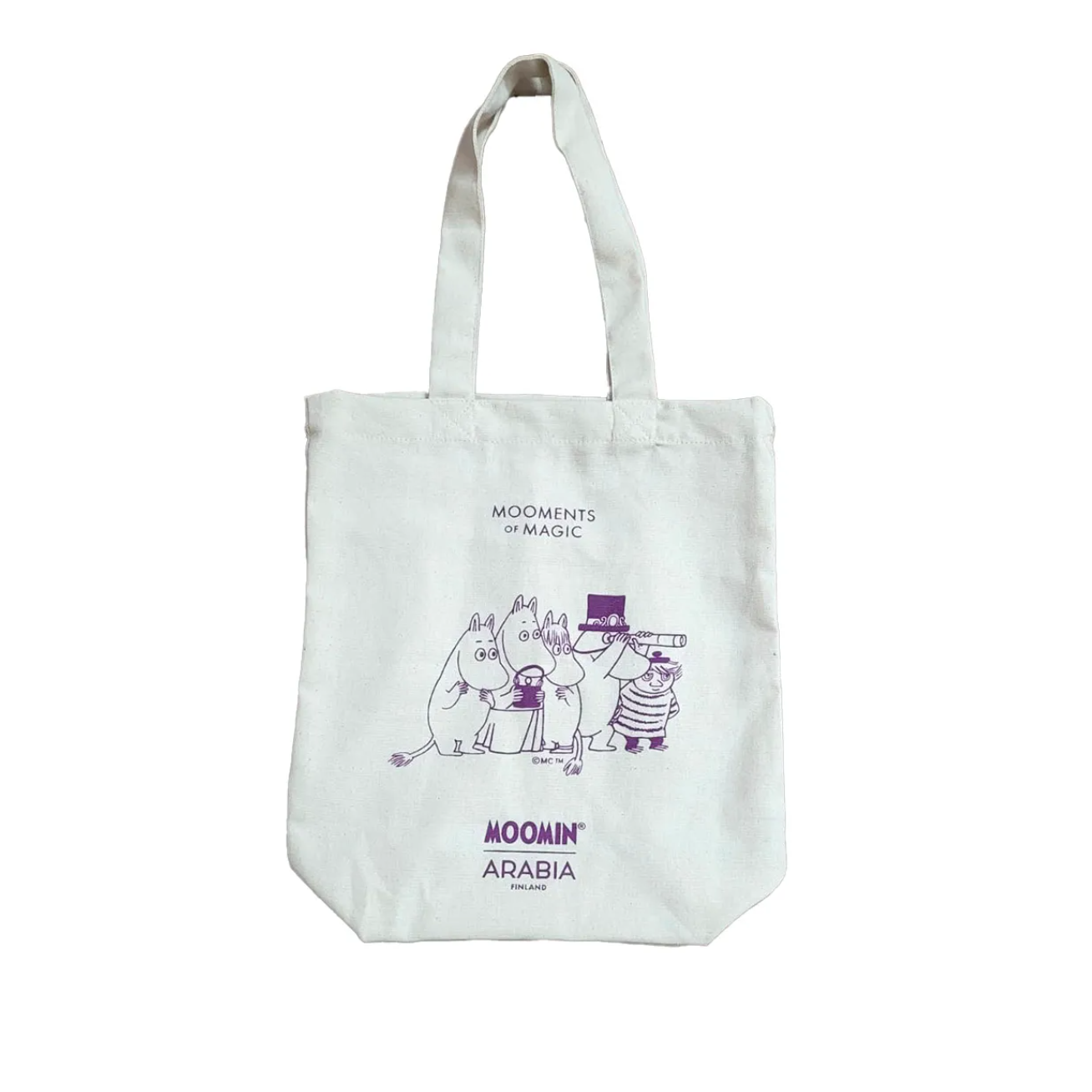 A handy Moomin canvas bag brings joy to everyday life. The design features the beloved Moomins along with their friend Too-ticky. This versatile cotton bag is ideal for all your needs—whether it's carrying your laptop and lunch or heading out shopping.